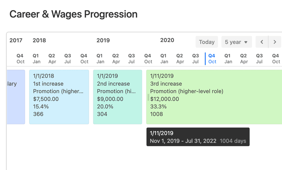 Track the career progression and compensation changes of your employees and always know how their roles and wages have changed over time.
