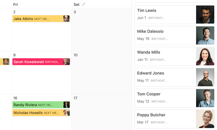 • Track birthdays & work anniversaries